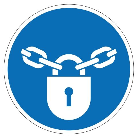 M028 afsluiten. Gebruik deze sticker om aan te geven dat je het gebouw of voertuig moet afsluiten. (NEN ISO 7010). De sticker is geschikt voor zowel binnen- als buitengebruik. Kies bij buitengebruik de optie “beschermfolie” voor extra bescherming tegen UV straling en water (en dus een langere levensduur).