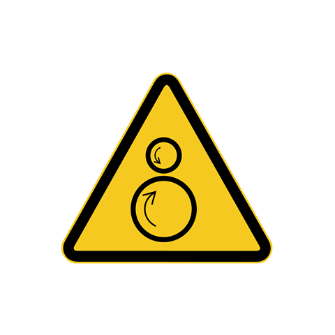 Draaiende delen pictogram (W025) sticker. Duurzame UV bestendige vinylsticker met optie voor een krasbestendige laminaat laag. Deze kunt u in het bestelmenu selecteren indien gewenst. De sticker is voor zowel binnen- als buiten inzetbaar.