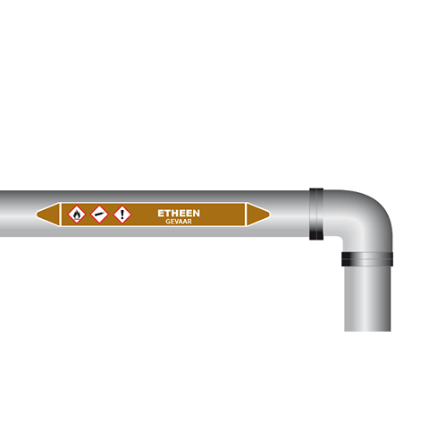 Leidingmarkering voor etheen. Gebruik deze sticker om aan te geven welke leiding als etheen gemarkeerd moet worden. Te gebruiken in ruimtes met gasleidingen, bijvoorbeeld bij een werkplaats of in de industrie. De sticker is geschikt voor zowel binnen- als buitengebruik. Kies bij buitengebruik de optie “beschermfolie” voor extra bescherming tegen UV straling en water (en dus een langere levensduur).