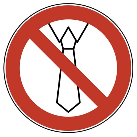 Loshangende kleding verboden. Gebruik deze sticker om aan te geven dat het verboden is om loshangende kleding te dragen. Te gebruiken bij werkmachines, lopende banden of in de industrie. De sticker is geschikt voor zowel binnen- als buitengebruik. Kies bij buitengebruik de optie “beschermfolie” voor extra bescherming tegen UV straling en water (en dus een langere levensduur).