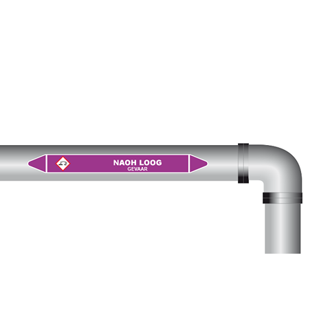 Leidingmarkering voor NaOH loog. Gebruik deze sticker om aan te geven welke leiding als NaOH loog gemarkeerd moet worden. Te gebruiken voor een duidelijke identificatie van uw leidingen. Bijvoorbeeld in laboratorium of in de industrie. De sticker is geschikt voor zowel binnen- als buitengebruik. Kies bij buitengebruik de optie “beschermfolie” voor extra bescherming tegen UV straling en water (en dus een langere levensduur).