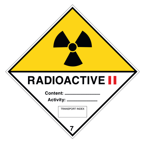 Radioactive categorie 2. Gebruik deze sticker om aan te geven dat je met radioactive categorie 2 te maken hebt. Te gebruiken op vracht en transport containers. De sticker is geschikt voor zowel binnen- als buitengebruik. Kies bij buitengebruik de optie “beschermfolie” voor extra bescherming tegen UV straling en water (en dus een langere levensduur).