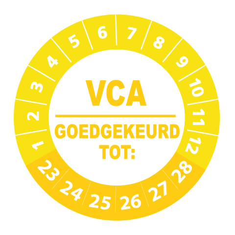 Bestel hier uw ‘VCA goedgekeurd op 2024’ stickers op makkelijk hanteerbare rollen. De keuringsstickers hebben een diameter van 3 cm en worden geleverd met een UV beschermlaag. Ze zijn daarom ook geschikt voor outdoor gebruik en kunnen prima tegen een stootje. Heeft u speciale wensen? Bel of mail dan gerust voor een offerte op maat!