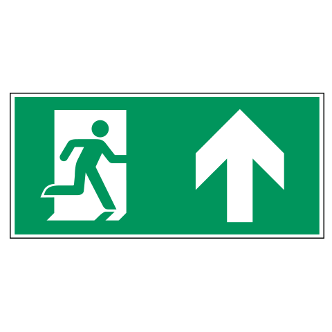 Vluchtweg naar boven pictogram. Gebruik deze sticker om aan te geven dat je voor de vluchtweg naar boven moet. De sticker is geschikt voor zowel binnen- als buitengebruik. Kies bij buitengebruik de optie “beschermfolie” voor extra bescherming tegen UV straling en water (en dus een langere levensduur).