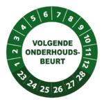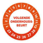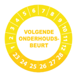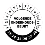 Bestel hier uw ‘volgende onderhoudsbeurt 2023’ keuringsstickers op makkelijk hanteerbare rollen. De stickers hebben een diameter van 3 cm en worden geleverd met een UV beschermlaag. Ze zijn daarom ook geschikt voor outdoor gebruik en kunnen prima tegen een stootje. Heeft u speciale wensen? Bel of mail dan gerust voor een offerte op maat!